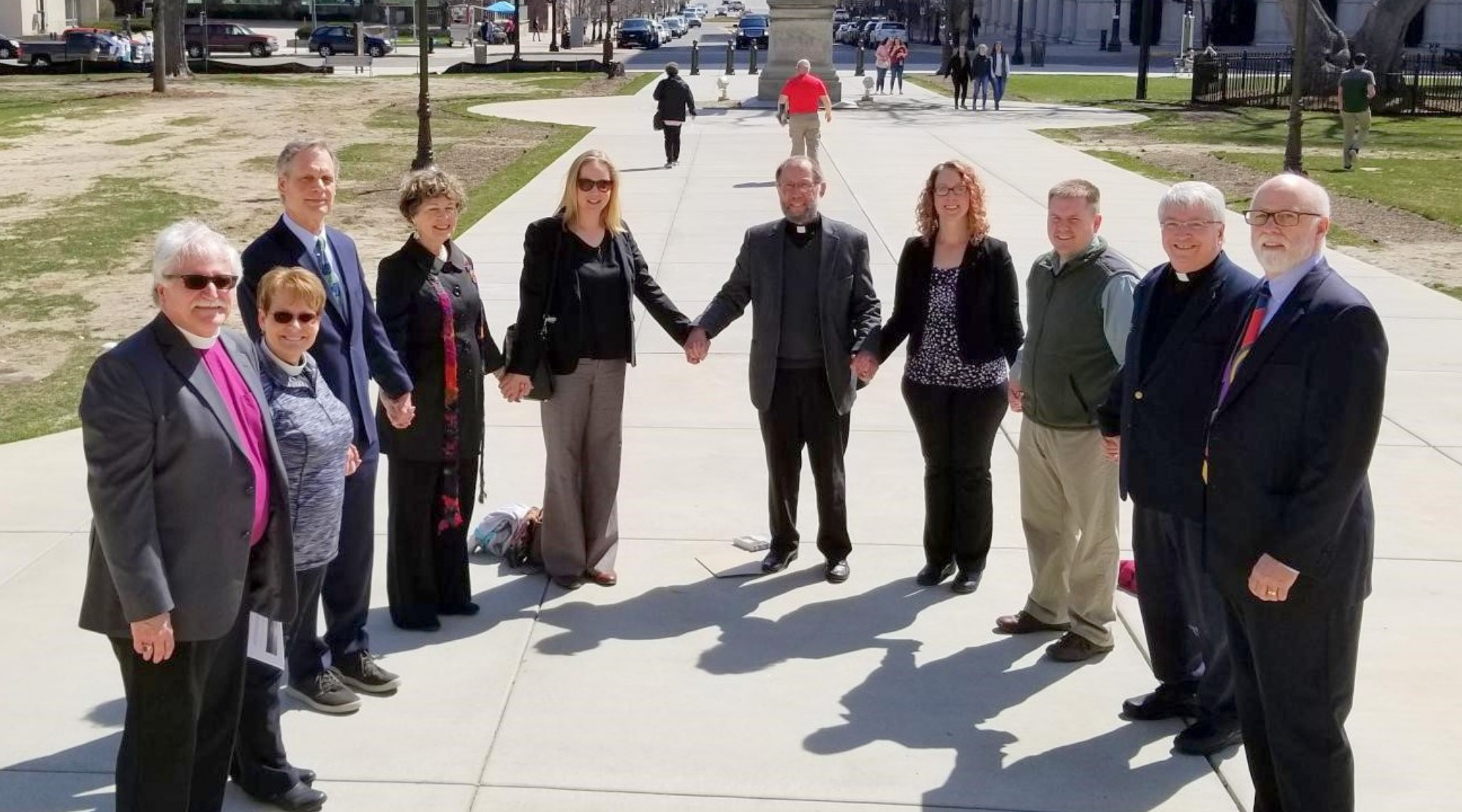 Fr. Charles with MI IPL staff, board members and faith leaders, delivering a letter signed by over 700 supporters to Gov. Whitmer regarding Line 5